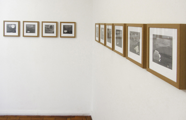4. Arquivo-ficção. 10 trabalhos montados em moldura de madeira natural com passepartout branco (ph neutro, crescent), impressão digital, desenho, recorte, impressão com carimbo, incrustação. Dimensões: 24 x 26 3 cm. (2014)